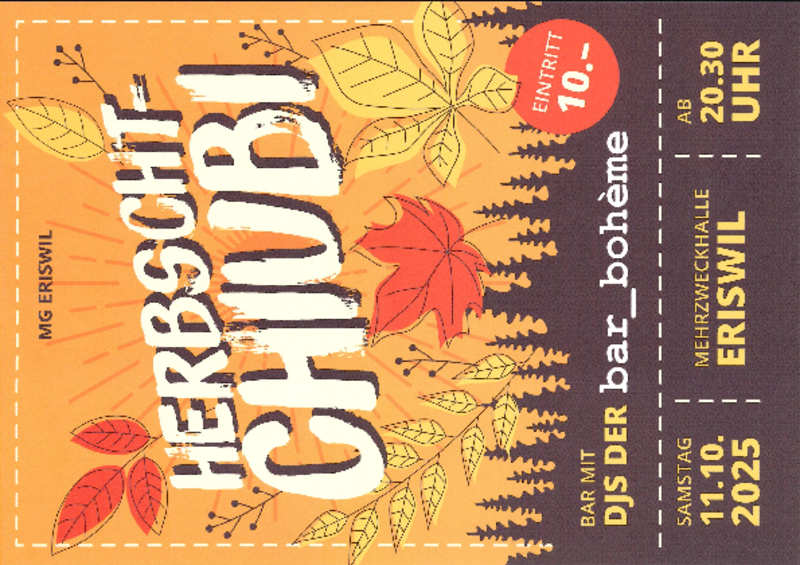 Oktoberfest 2025Datum:11.10.2025Ort:MehrzweckhalleVeranstalter: Musikgesellschaft Eriswil ics Zurück zur Übersicht